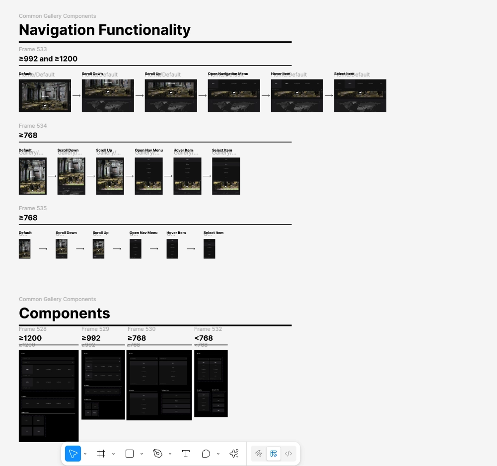 These deliverables included high-fidelity Figma prototypes for key interactions, a custom component library tailored for a media-rich experience and the final fully developed and populated Webflow site with interactive map and timeline navigation.