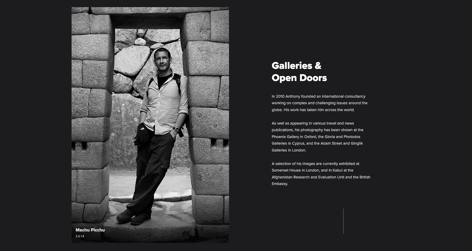 Anthony Ellis is a seasoned traveller and serious hobbyist photographer whose work spans decades and continents. His goal was not commercial gain, lead generation, or high traffic — but to present his vast portfolio in an immersive, highly personal way.